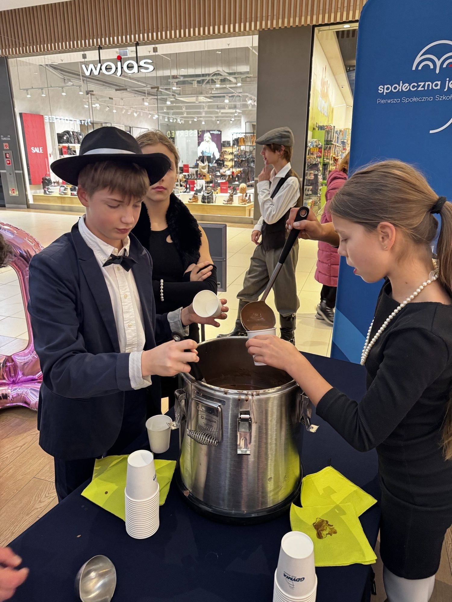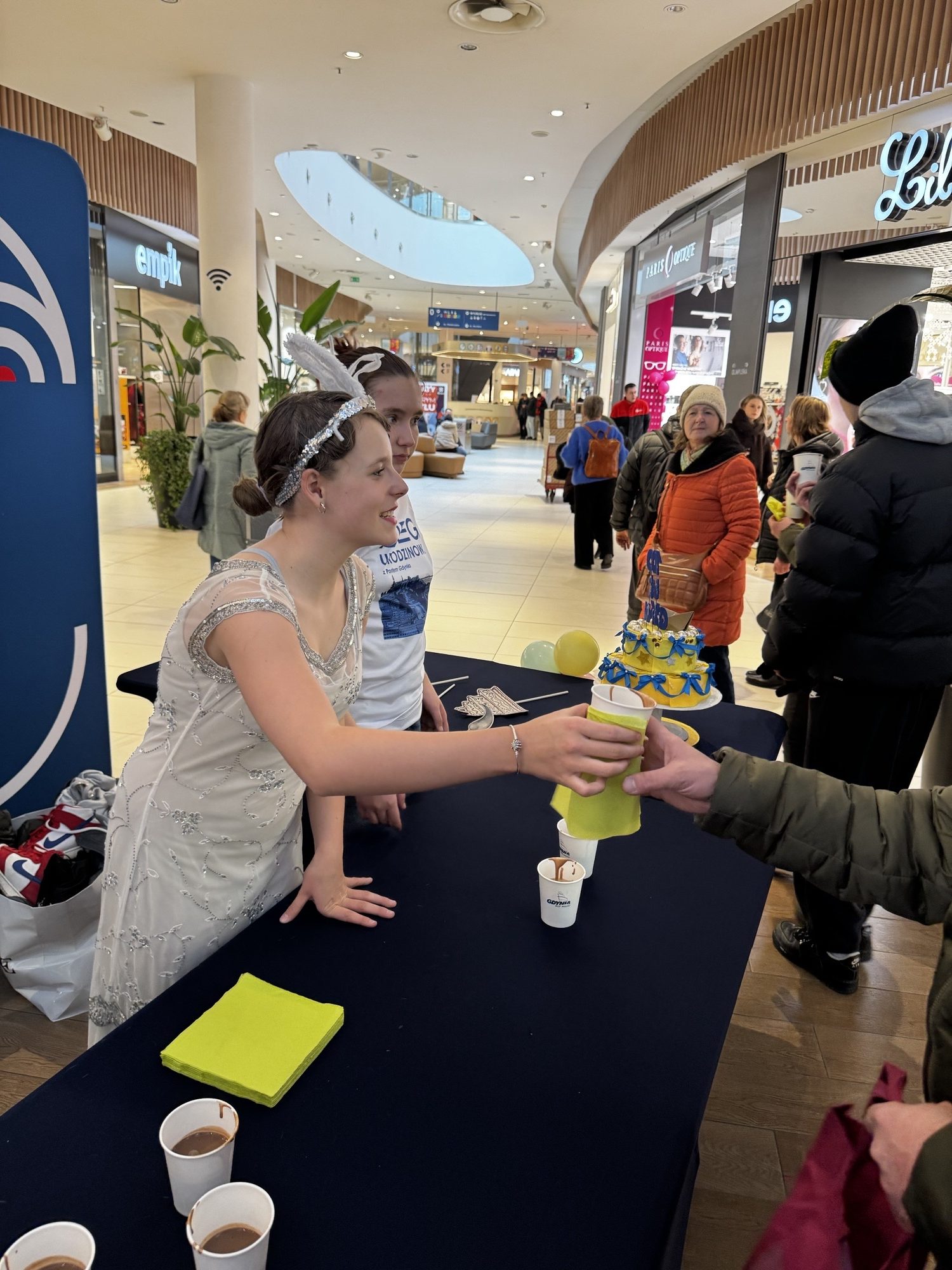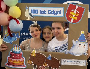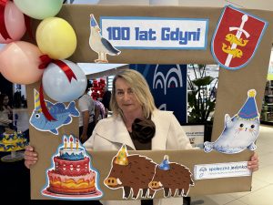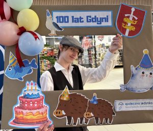 Samorząd Uczniowski, z Panem Dyrektorem na czele, częstował Gdynian pyszną, gorącą czekoladą – bo przecież od zawsze Gdynia słynęła z gościnności, otwartości i wspólnoty. Była to słodka okazja, by symbolicznie wznieść toast za miasto, które w ciągu stu lat z małej osady rybackiej stało się nowoczesnym portem marzeń.