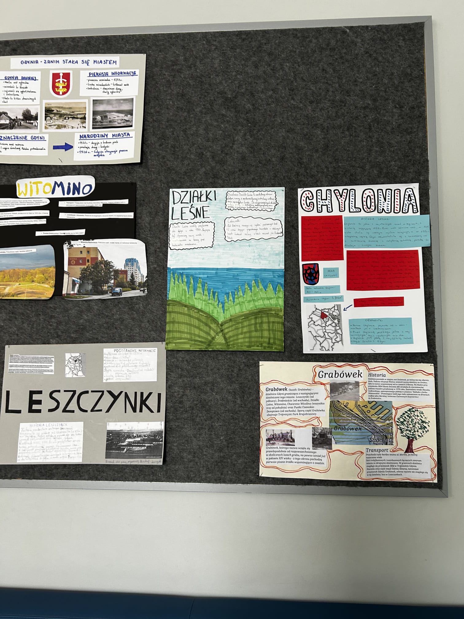 Z okazji urodzin miasta Gdyni nasi uczniowie przyjrzeli się dzielnicom zgłębiając ich historię oraz prezentując je na plakatach. Plakaty te dołączyły do licznych w naszej szkole ozdób przygotowanych dla celebracji 100 urodzin miasta Gdyni.
