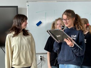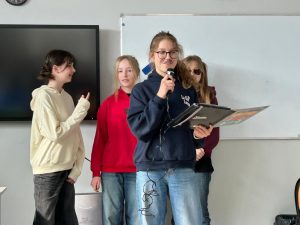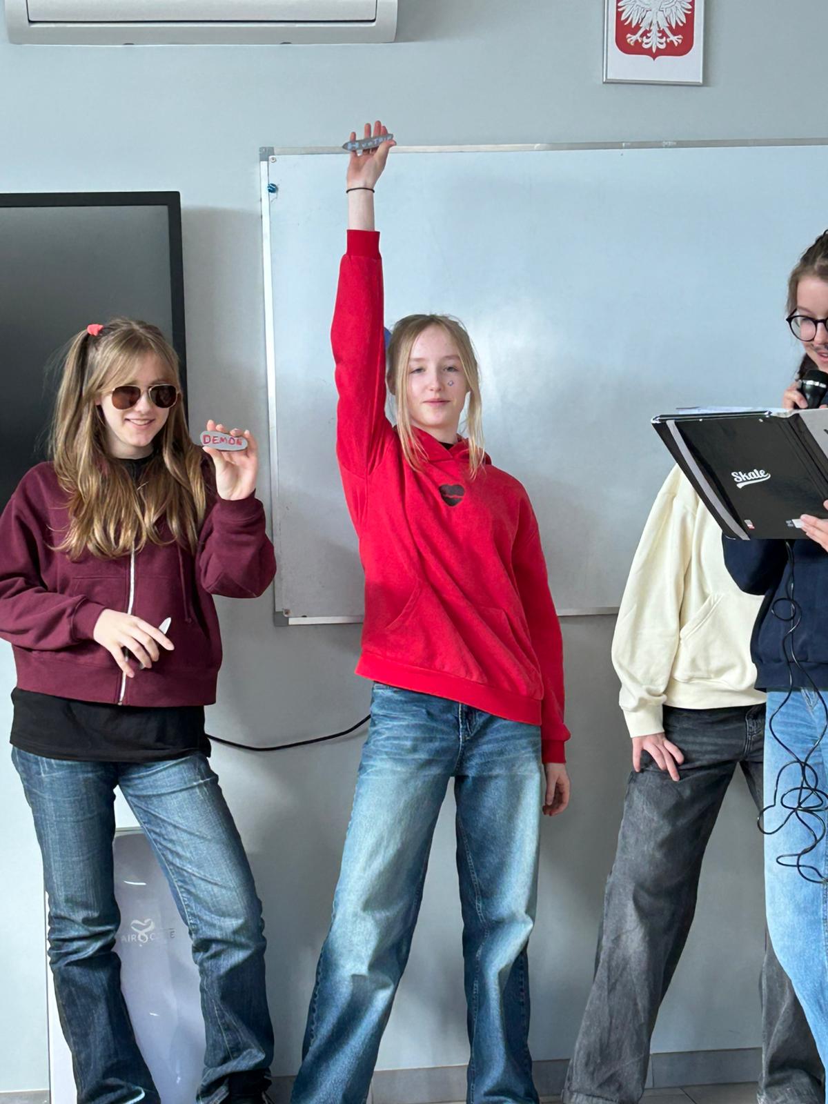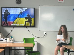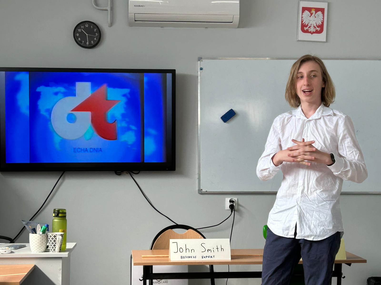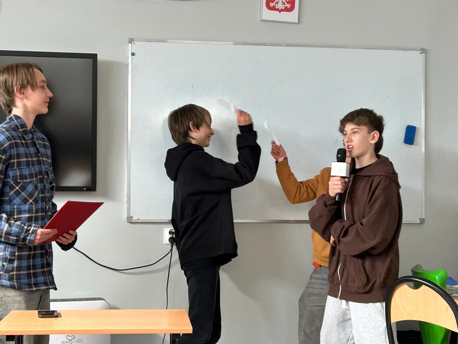 Dział słownictwa Media na poziomie B2 to już poważna sprawa. Uczniowie klasy 7 wcielili się w rolę reporterów, specjalistów od geopolityki, celebrytów i twórców programów dla dzieci by powtórzyć słownictwo związane ze światem telewizji i radia. Efekty? Zaskoczyły nawet panią Anię, która (wyjątkowo) nie miała ŻADNYCH uwag!