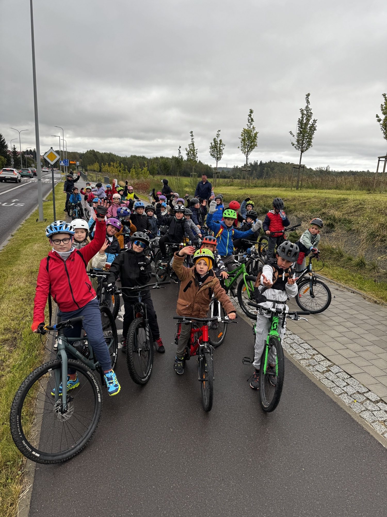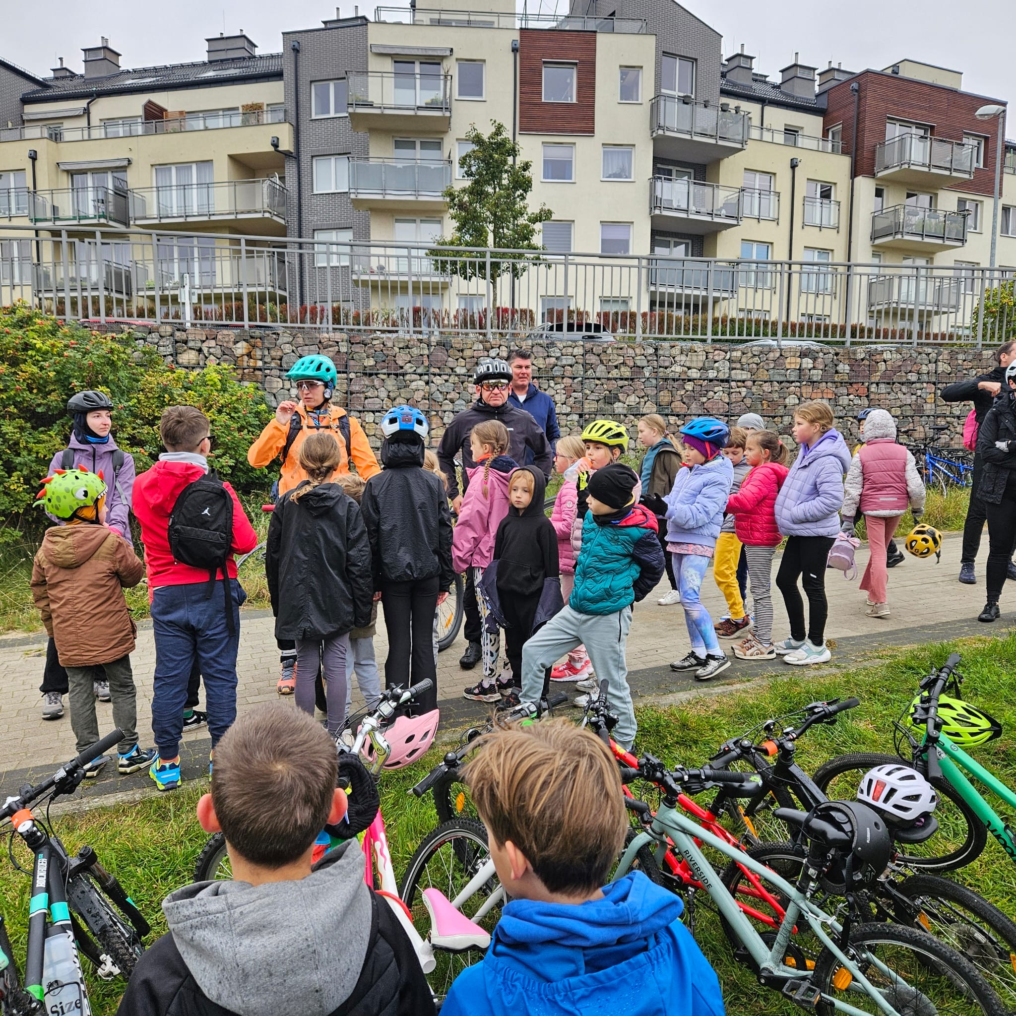 Blisko 100 uczniów wzięło udział w wycieczce po Gdyni, zorganizowanej w dwóch turach. Mimo pochmurnej aury humory dopisywały, a energia dzieciaków udowodniła, że żadna pogoda nie jest straszna prawdziwym rowerzystom!